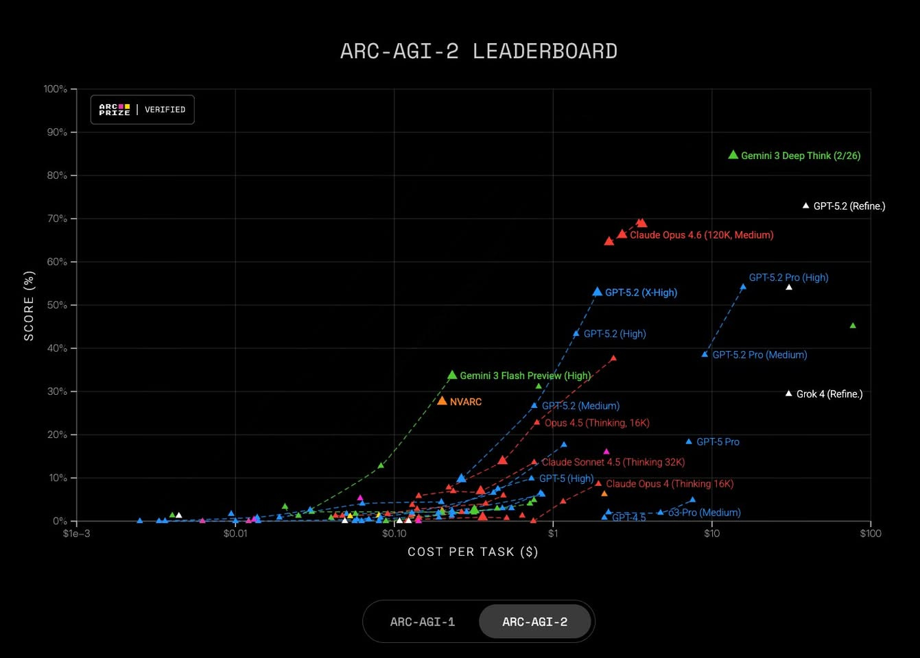 最先端AIモデルの追撃戦において、Google Gemini 3 Deep Think は Claude Opus 4.6 をすでに上回っただけでなく、完成度とコストの両面で人間レベルに近づいている。このペースで進めば、今年中にもこの指標自体が意味を失う可能性が高い。