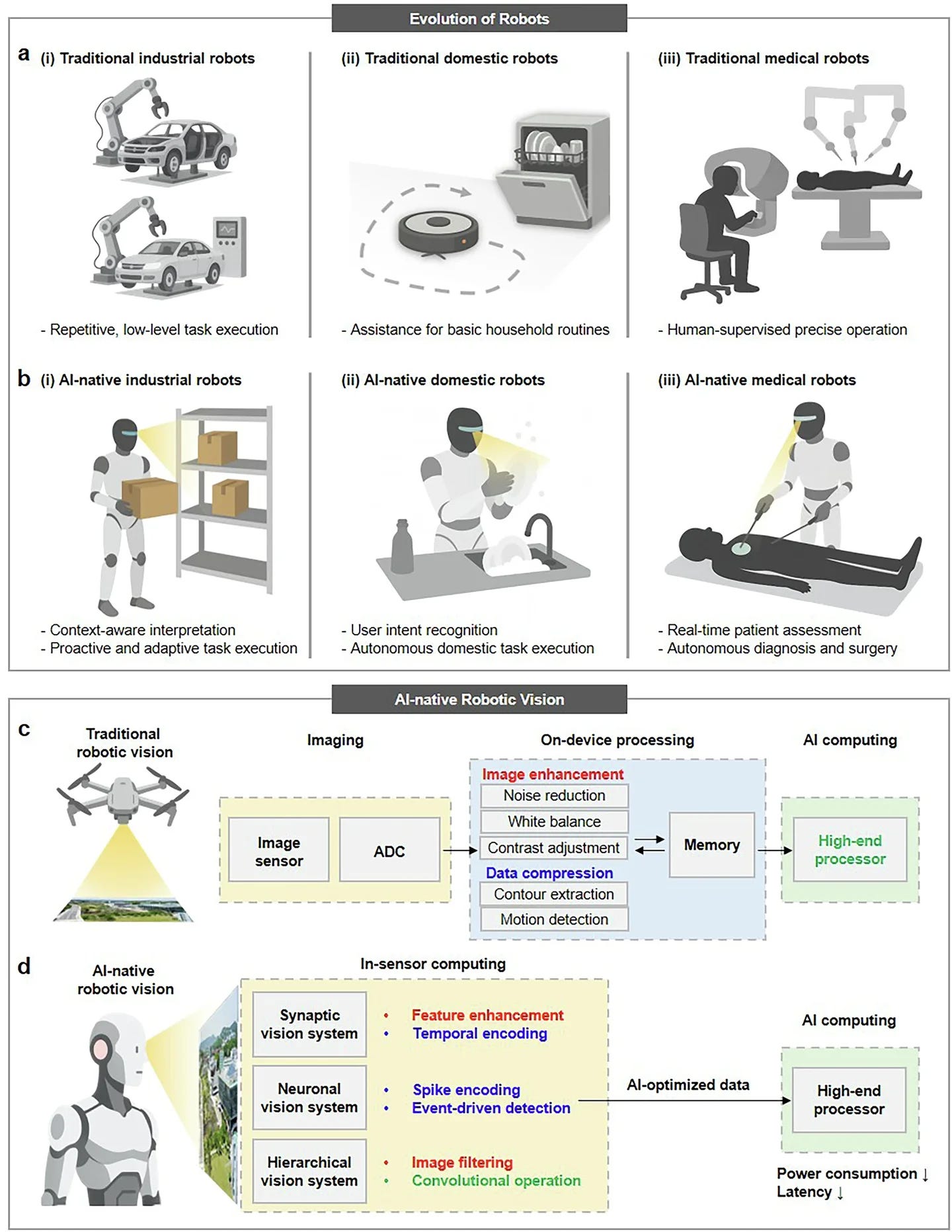 最新の研究では、人間の視覚メカニズムに着想を得て、人工視覚に脳の中継・フィルタリング機能に似た設計を導入しました。さらに、データの保存と計算を同一回路内で統合するニューロモルフィックハードウェアを組み合わせ、まず本当に動いている場所を検出し、その重点領域をアルゴリズムに渡して精密に計算します。